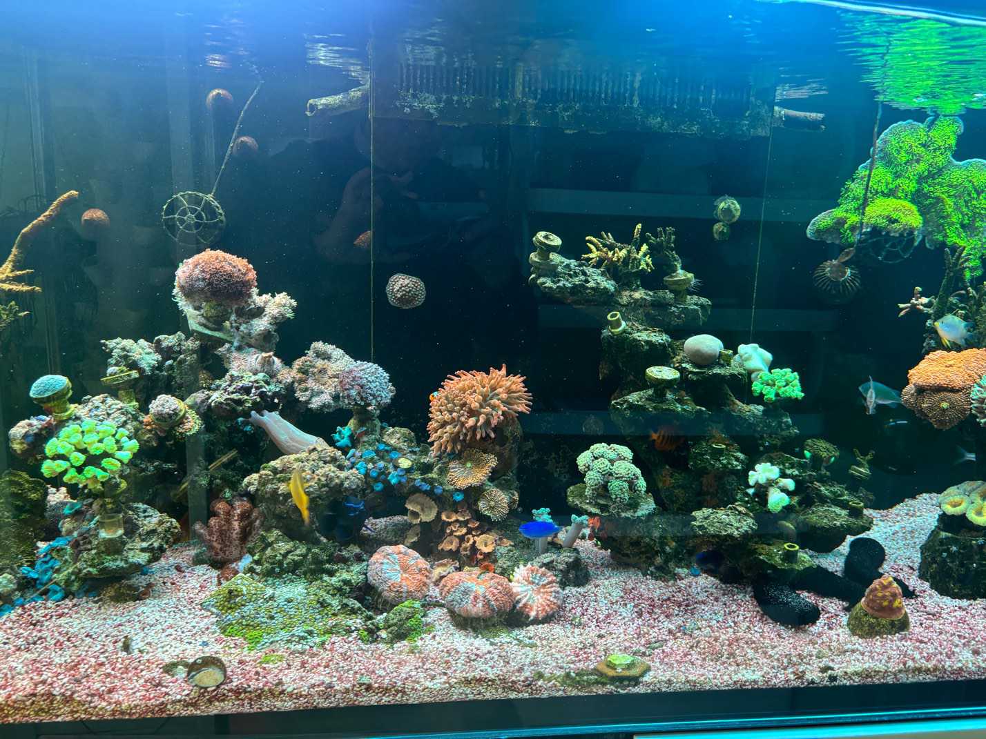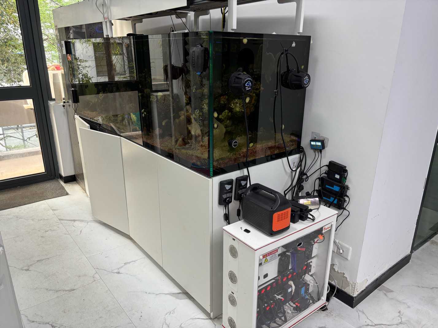 蓝色律动 发表于 2025-04-11 08:12 设备大致情况: 1,蛋分 Aqure 和八爪鱼 2,spa海神监控 3,gp G90造浪2台 4,卡摩尔自动 换水 2台 5,cove 钙反 6,4台红海珊 瑚灯 7,施耐特 交火灯盘 和 电源箱 生物:蓝吊 紫吊 金菇 彩色爆炸菇 红丹包 公子一对盘奶嘴 黑条小丑鱼一对