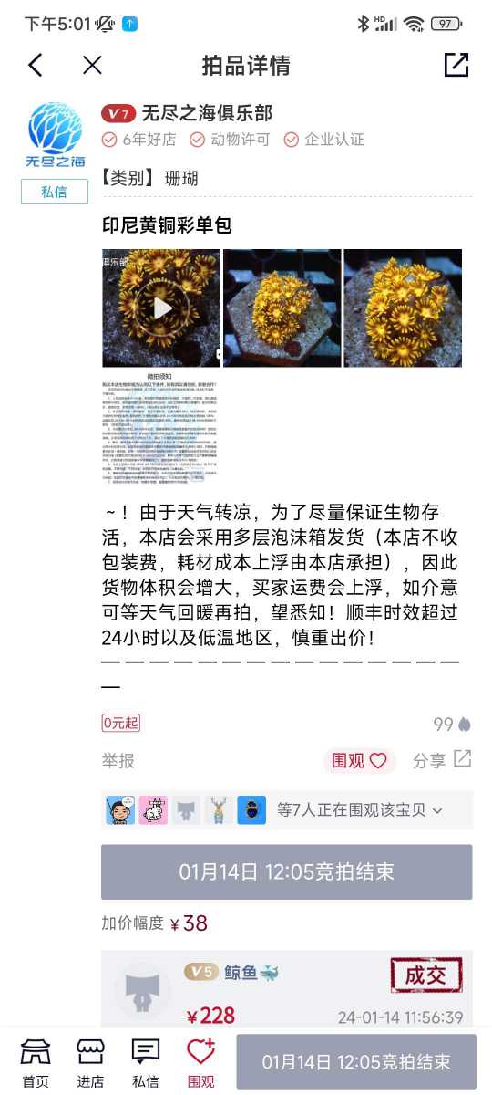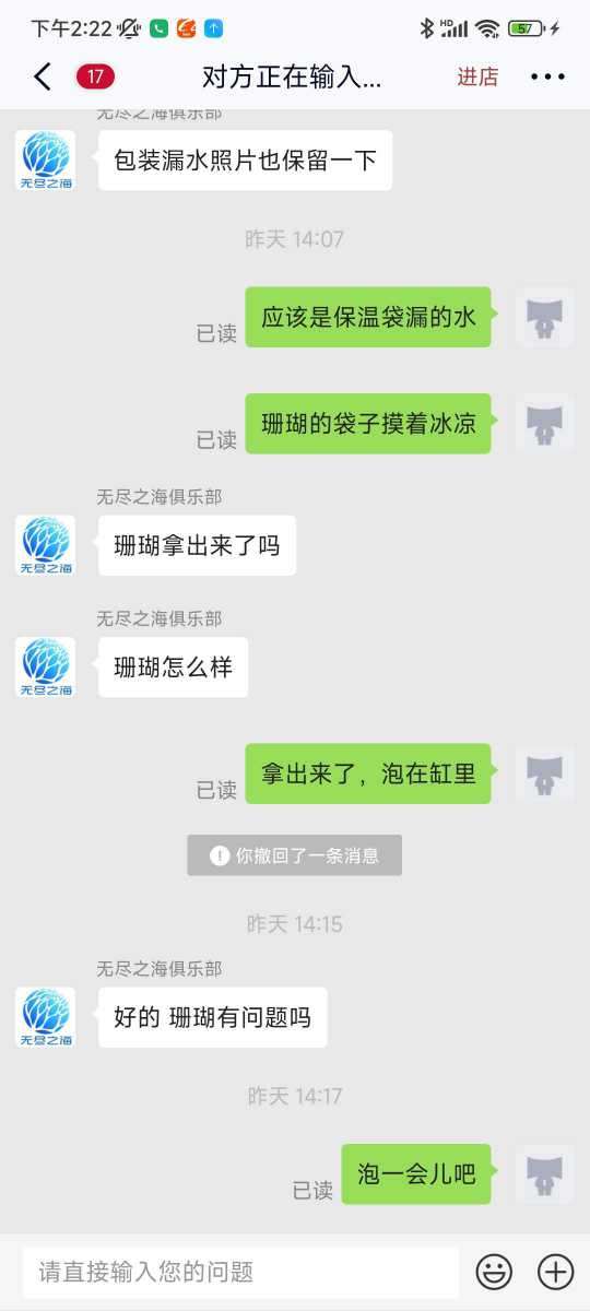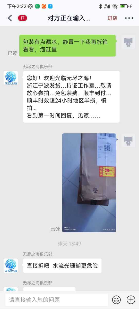 鲸鱼宝宝 发表于 2024-1-19 20:30 我说的重点是,保温袋漏水了,以至于珊 瑚水温低,造成珊 瑚受损。商家找各种理由推脱