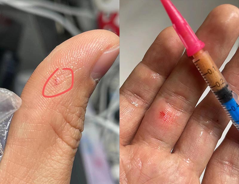 接着我们再介绍另外一款稀鳍鳚,也就是俗称“汤加金剪刀”的稀鳍鳚了,它的学名是Meiacanthus tongaensis ,从名字就已经知道它是通过产地来命名的鱼了, 它的背鳍上有一条黑色条纹,非常惊艳的动作是可以游泳时能够在水中“盘旋”,大约相当于直升飞机的动作, 在珊瑚礁水族馆中优雅而时尚地移动,从快速飞行到突然停止,然而我从从来没有观察到它主动攻击过大一些的吊类,它的毒性仅仅是对自身的保护; 不过这个鱼的定水过程非常复杂,如果掌握不好它的习性,很容易出现闭口的情况;另外提到它还不得不讲一下它与我国鱼友的爱恨情仇,我国一位鱼友的科学探索精神毫不逊色于西方学者,他勇敢的尝试了汤加金剪刀的毒性,经过测试,他描述到咬之后会有阵痛,这种描述看起来有一点空泛,我们决定在这里把被咬之后的照片放到这里供大家欣赏,奉献这个照片供大家把快乐建立在别人痛苦之上“快感”,尽管我并不能确切的保证他真的是痛苦的, 他慷慨的提供了这些照片,我们对此致谢他以及他的科学精神,会特别保护关于他的手的“版权”。